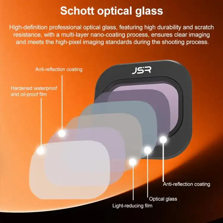 Optimera din drönarfotografering med det avancerade filterkitet för DJI Mini 5 Pro JSR KB Series. Detta omfattande set är designat för att ge dig full kontroll över ljusinsläppet och förbättra bildkvaliteten under olika ljusförhållanden. Med dessa högkvalitativa filter kan du ta professionella bilder och videor som verkligen sticker ut. Varje filter är noggrant utformat för att möta de höga kraven från fotografer och filmskapare, vilket säkerställer enastående resultat varje gång du flyger din DJI Mini 5 Pro JSR KB Series.